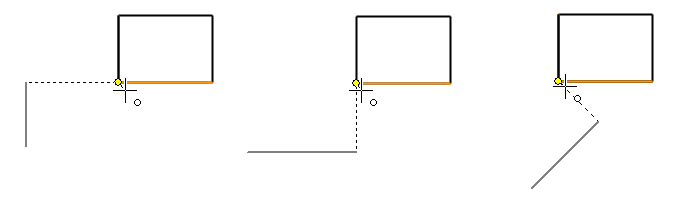 Kun olet piirtämässä viivaa ja kohdistin on lähellä vaaka-, pysty- tai 45°-suuntaa, niin kohdistin ehdottaa suuntalukitusta. Jos tällöin napsautat kohdistinta, niin viivan suunta lukittuu, sen sijaan että osoittaisit viivan päätepisteen. Vasta seuraava osoitus määrittää tällöin viivan päätepisteen paikan.