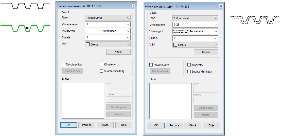Lisäksi viivan piirtojen yhteydessä viivat voivat saada automaattisesti ehtoja, joita et heti havaitse, mutta jotka myöhemmin piirustusta ratkaistaessa (F5 tai Päivitä piirustus) voivat siirtää geometriaa ei toivotulla tavalla.