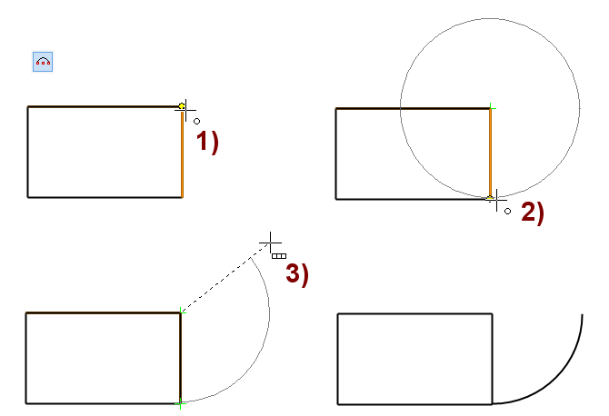 Jos kohdistin ei ole riittävän lähellä viivaa, niin kohdistimen oikeaan alakulmaan ei ilmesty pisteen tai viivan symbolia, jolloin piirrettävän viivan lähtöpiste (tai päätepiste) piirretään ilmaan, eikä keskipisteeseen tai kehän viivaalle.