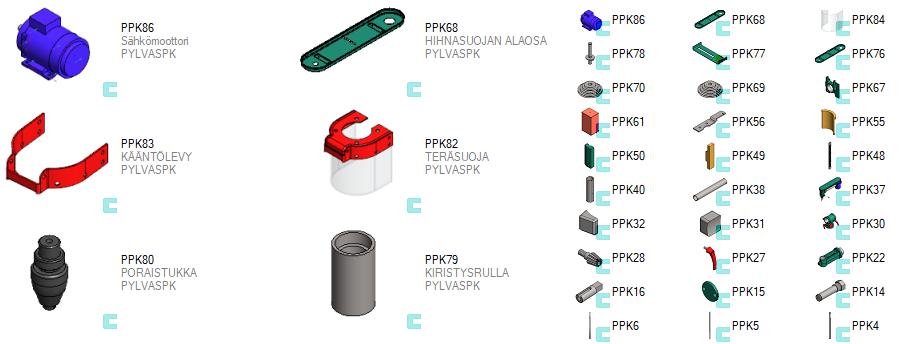 Tällaista erillistä kuvaa ei ole tehty kaikille kirjastokomponenteille, ei esim. niille joita ei ole tarpeen varioida.