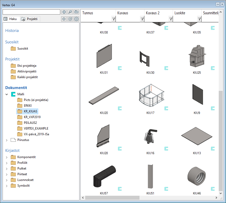 Vertex G4:ssä mallit ja piirustukset löytyvät Windowsista tiedostoina ja projektit löytyvät Windowsista kansioina, mutta näihin objekteihin liittyy aina myös tietokannoissa olevaa tietoa.