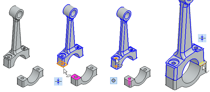 Kun kokoonpanossa ollaan lisäämässä osaan siten että osoitetusta kohdasta löytyy osamallissa sarjassa olevaa geometriaa, niin ohjelma mahdollistaa, että osa lisätään sarjaan tuon piirresarjan perusteella.
