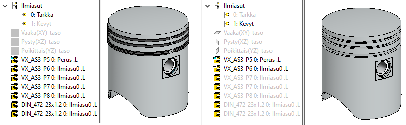 Tässä on tarkoitus muodostaa pääkokoonpanoon kaksi ilmiasua, tarkka ja kevyt. Tarkassa ilmiasussa näkyvät kaikki osat ja kevyessä ilmiasussa näkyvät ne osat, jotka kummassakin alikoonnassa näkyvät niiden kevennetyssä ilmiasussa.