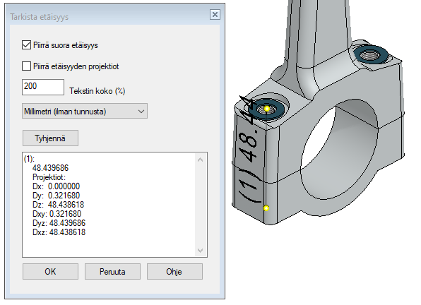 Apuvalikon toiminnoilla: Haku pintaan, haku viivaan ja haku pisteeseen.