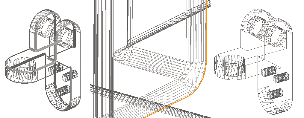 Kuvan mallissa, jossa pyöristykset ovat näkyvissä on 2652 pintalappua ja jos pienet pyöristykset ovat piilossa on pintalappuja vain 396 eli 13% tarkasta mallissa.