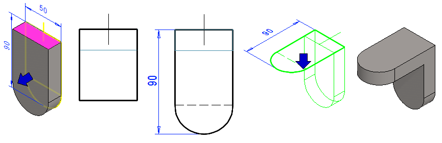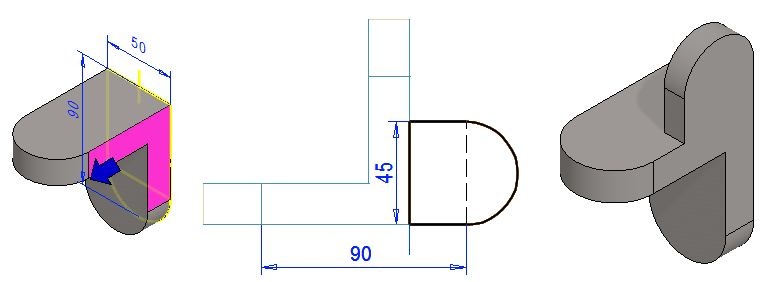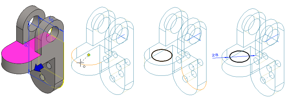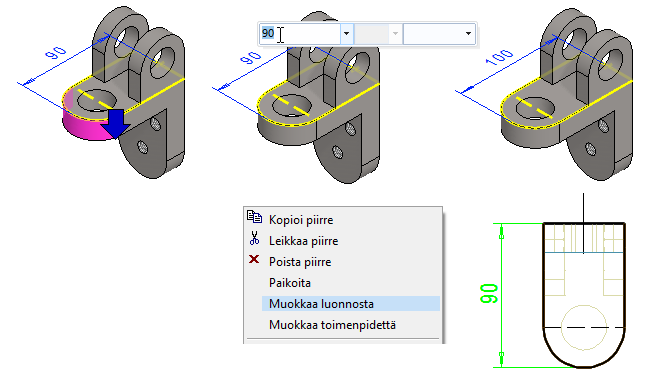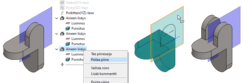 Voit valita piirteen myös mallista osoittamalla jotain pintaa, joka on todennäköisesti syntynyt ko. vaiheessa.