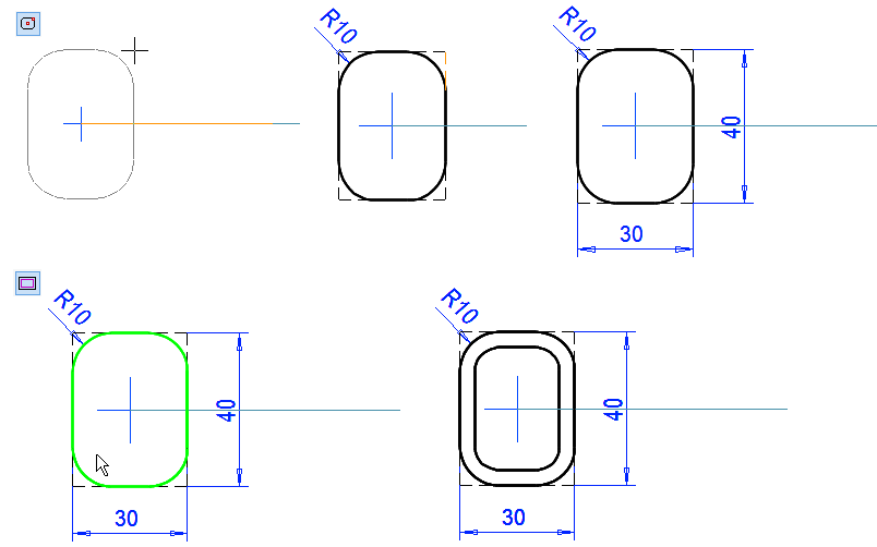 Piirrä yksi ympyrä saman keskeiseksi nurkkapyöristyksen kanssa, halkaisija: 8.