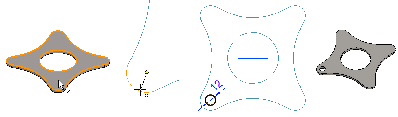 Valitse piirre joko osoittamalla se piirrepuusta tai valitse mallista piirteen pinta.