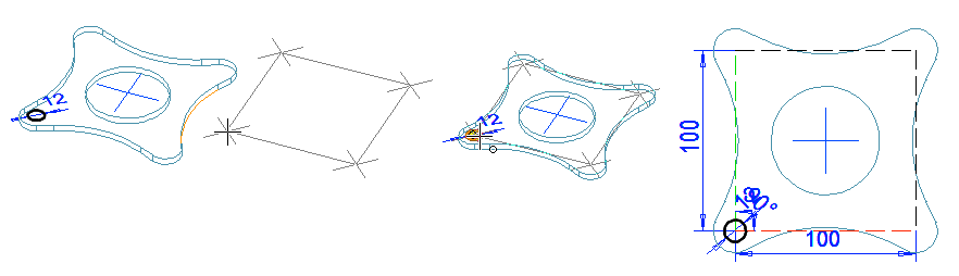 Apugeometrian sijoituksen jälkeen, ohjelma esittelee luonnoksen, jossa on mittojen muuttaminen on mahdollista.