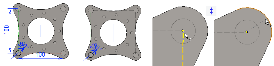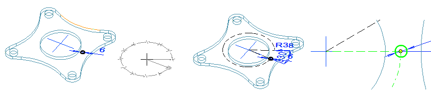 Luonnostele ympyrä siten että keskipiste on yhtenevä korvakkeen keskipisteen kanssa: