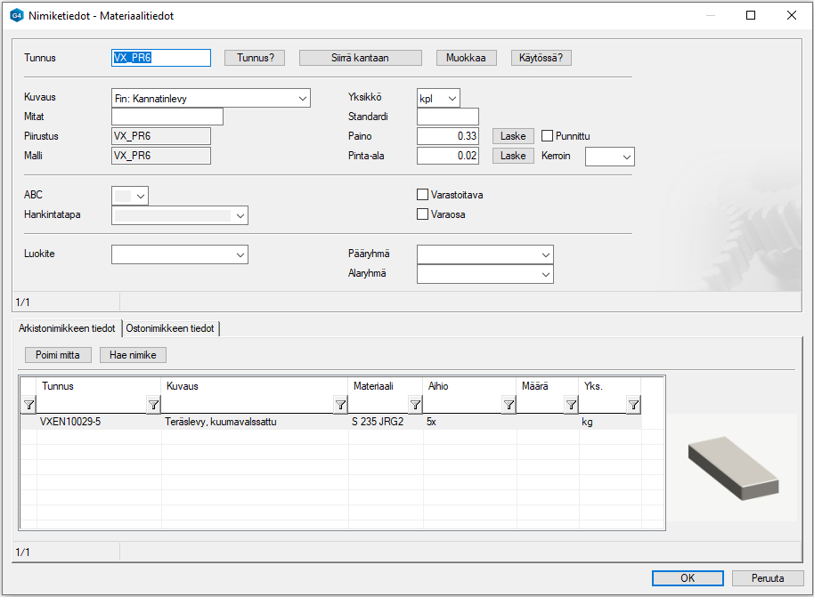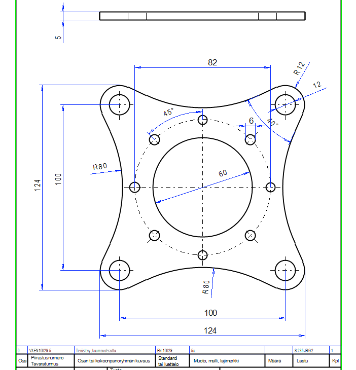 Katso tarkemmin harjoituksen Mallin piirustus kohtaa Annetaan mallille raaka-aine eli osaluettelo-tieto.