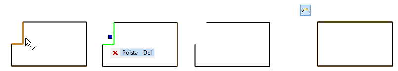 Viiva poistuu, mutta viereiset viivat eivät palaudu risteyskohtiin, kuten pyöristyksen poistossa tapahtui.