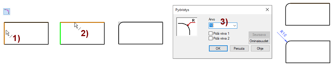Syötä pyöristyssäde. Kuva 3).