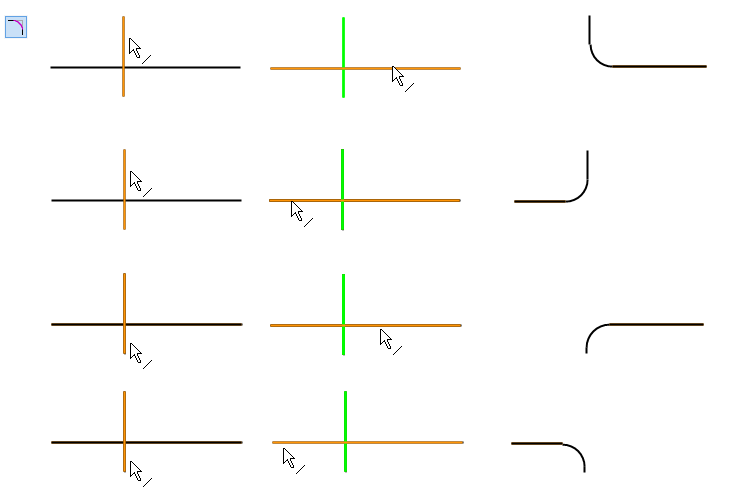 Pyöristys poistetaan ja viivat jatkuvat risteyksiinsä saakka