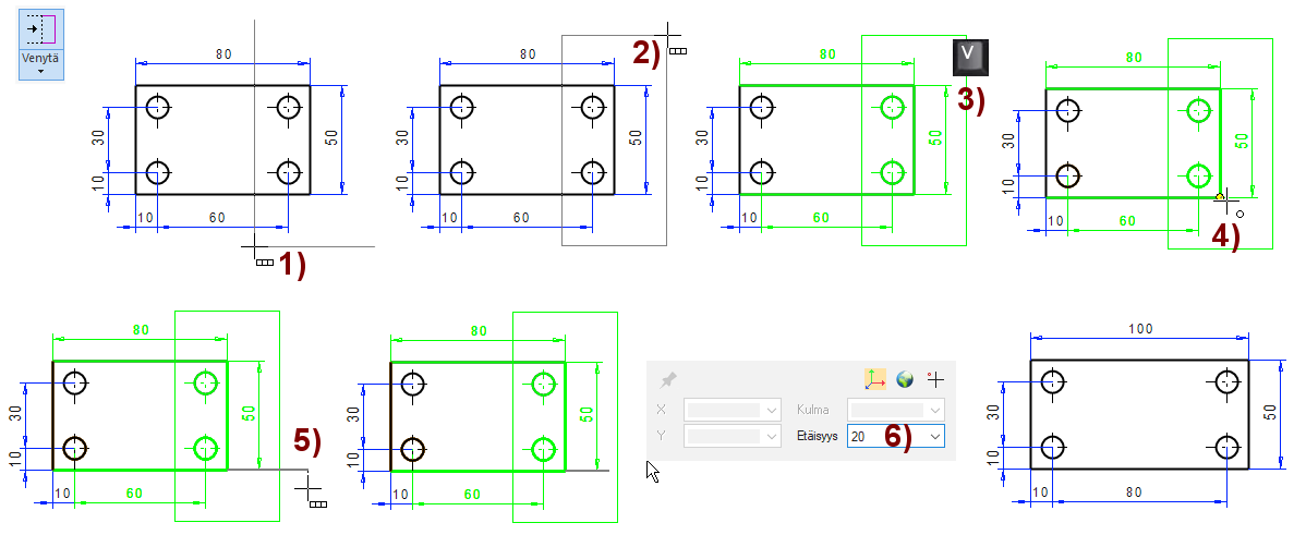 Siirrä pisteitä, eli venytä geometriaa syöttämällä mitta