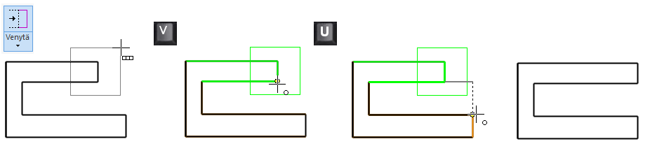 Venytä (siirrä pisteitä) toiminnallisuuden vaikutus geometriaan.