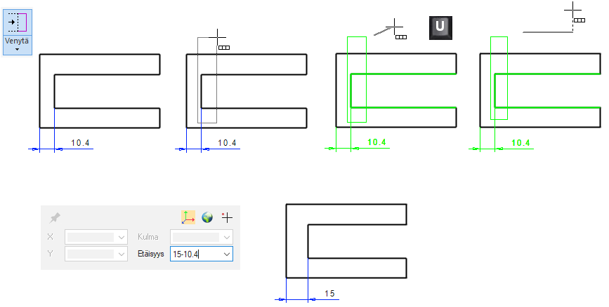 Lukitse vaakasuunta U-näppäimellä. (ei ole pakollista, koska syötät siirroksen numeerisesti.