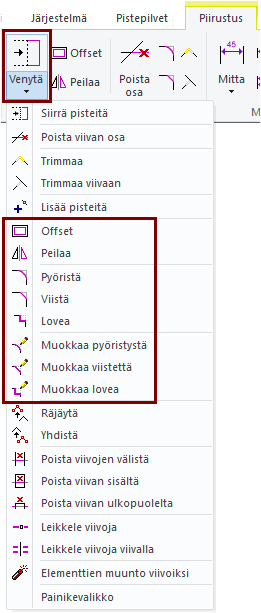 Lopeta offset-viivojen piirtotoiminto: