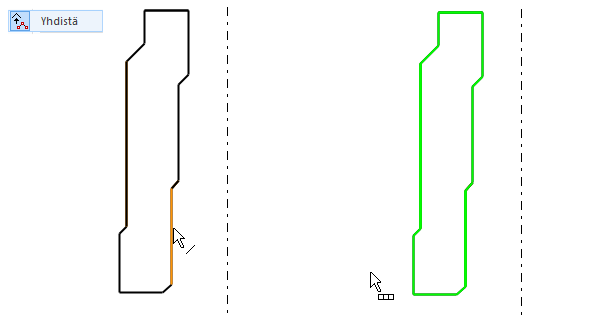 Yhdistetään viivat yhtenäiseksi viivaksi.