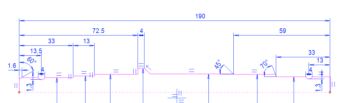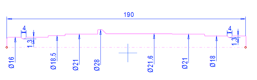 Osoita akselin päätyviivat ja anna mitaksi 190.