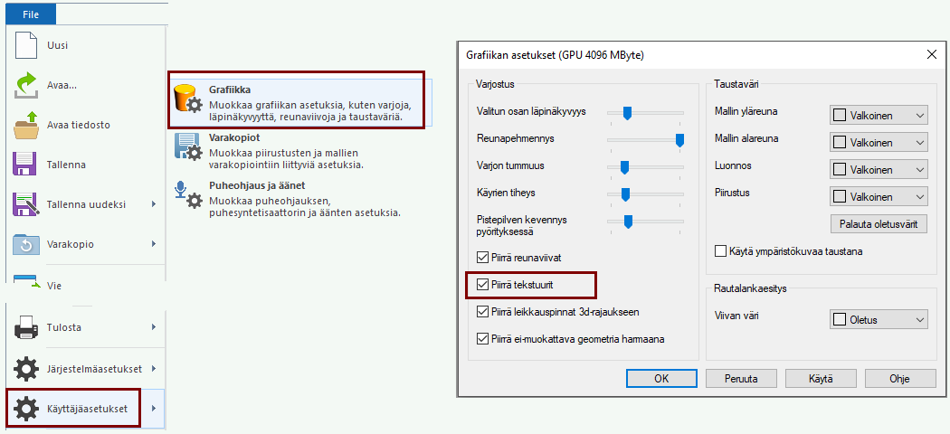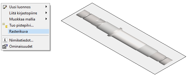 Rasterikuva näkyy osamallissa ja luonnoksessa vain, jos apugeometria on näkyvillä.