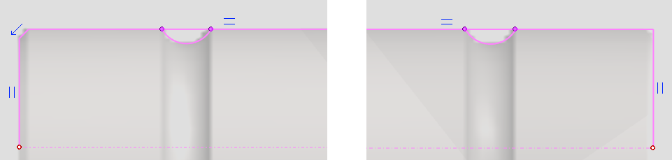 Ilman tätä viivaa, muotoviivaketju jää avoimeksi (näet punaiset pisteet avoimien viivojen päässä) etkä voi tehdä pyöräytystä.