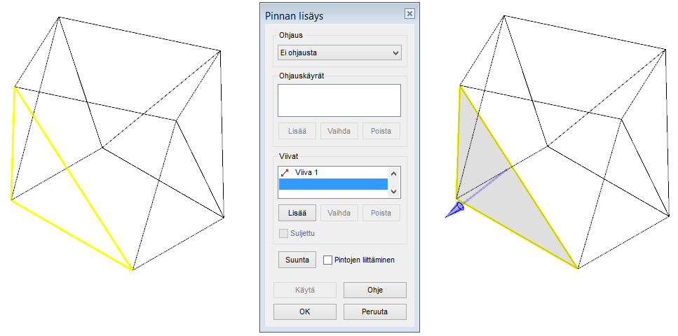 Tämä optio pyrkii pitämään liitettävät pinnat samansuuntaisina, joten pinnan suuntaa ei tällöin esitellä.
