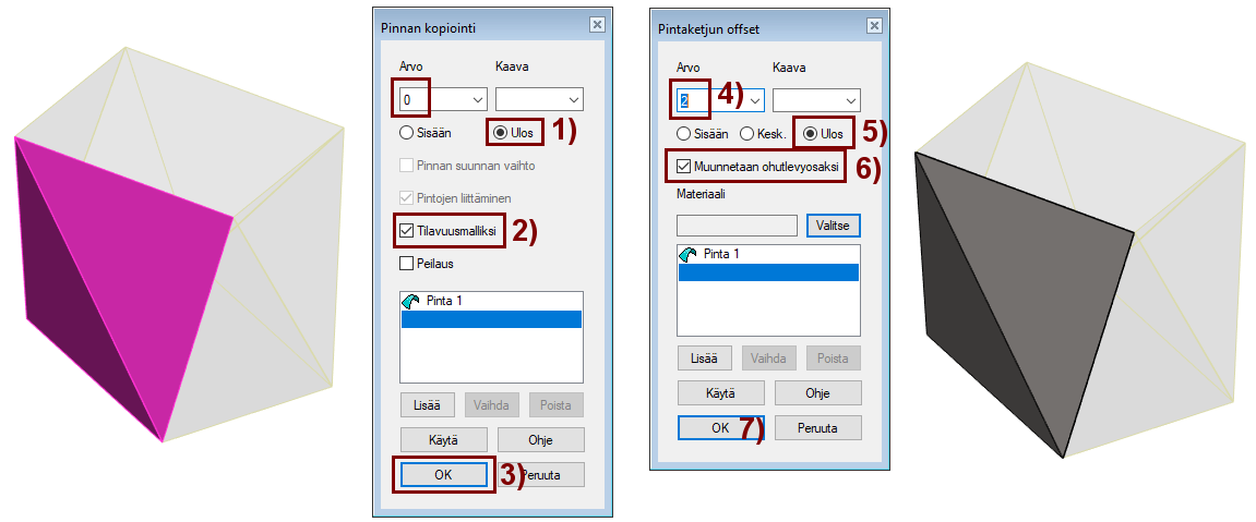 Kopioidaan kappaleen pinta ohutlevyosaksi