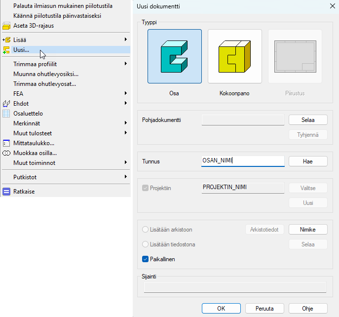 Hyväksy osan tallennuspaikaksi sama projekti, joka on kokoonpanolla (Tämä on yleisin tapaus).