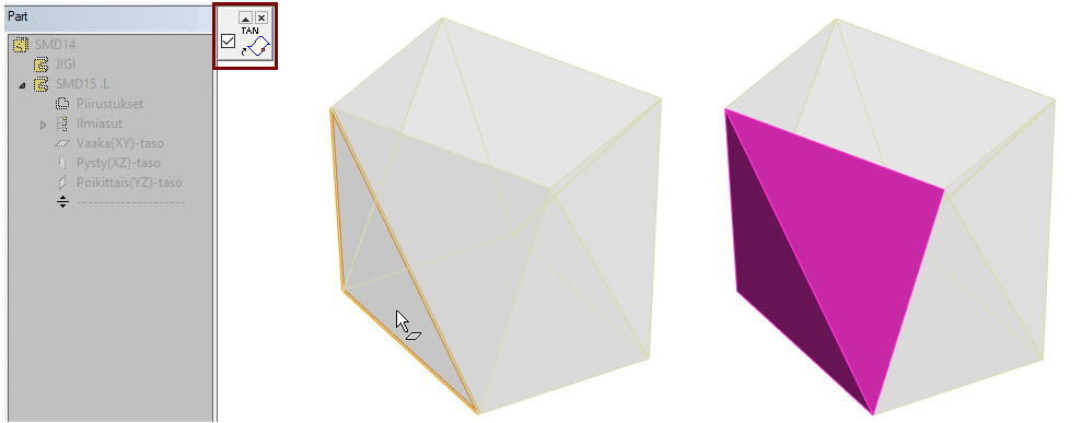 Valitse työpöydän vasemmasta yläkulmasta TAN eli tangentiaalisen pintaketjun valinta.