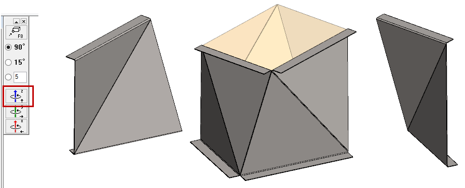 Käännä osaa ennen sijoitusta kaksi kertaa 90° sinisen akselin ympäri.
