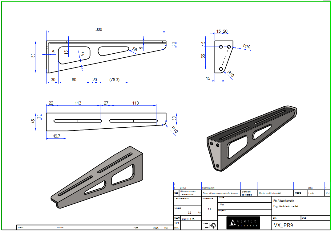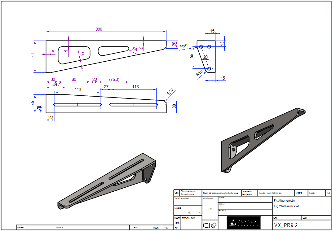 Tee mallille piirustus oikeakätisestä kannattimesta.