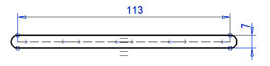 Ohjausviivan avulla hallitsemme muotoa siten että osaan lisätty pyöristys kiertää kiinnitysreiän vakioetäisyydellä.