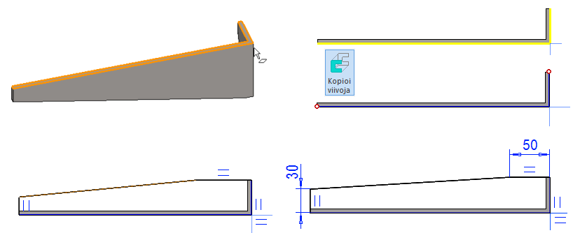 Kopioitua piirustusta on syytä muokata esim. poistamalla siitä mallia huonosti kuvaavia projektioita ja lisäämällä tilalle paremmista suunnista otettuja projektioita.