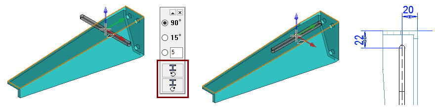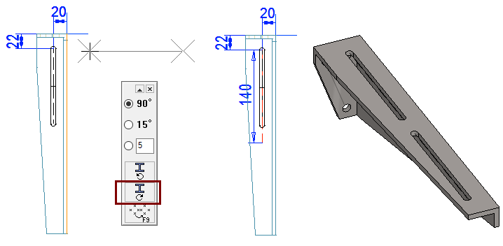 Suuntaa apugeometria kannattimen suuntaiseksi tarvittaessa (Kuvassa 90° myötäpäivään).