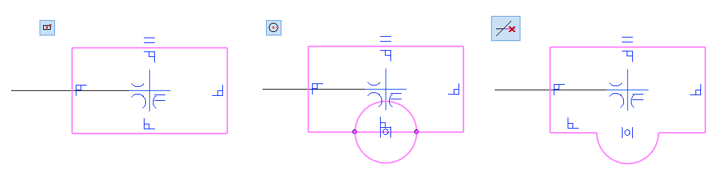 Ohjelma etsii pyyhkäisyä varten kaikki valitulle viivalle tangentiaaliset viivat ja lisää ne Pyyhkäisyelementeiksi.