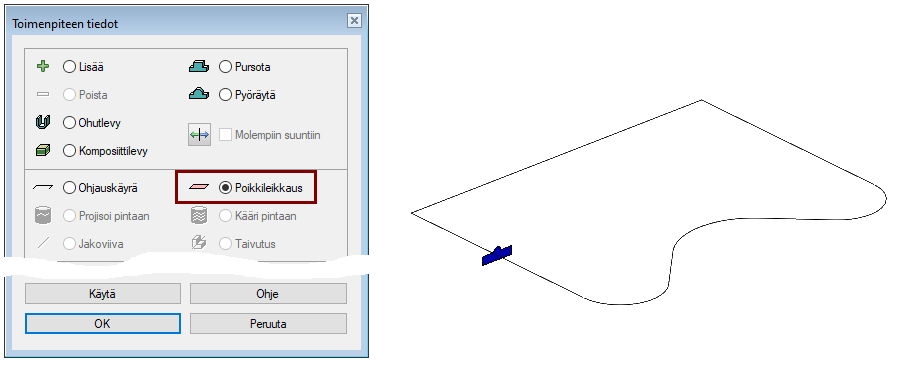 Dialogi sisältää myös mahdollisuuden siihen, että pyyhkäisy voidaan trimmata kummastakin päästä joko pintaan, osaan tai pisteeseen.