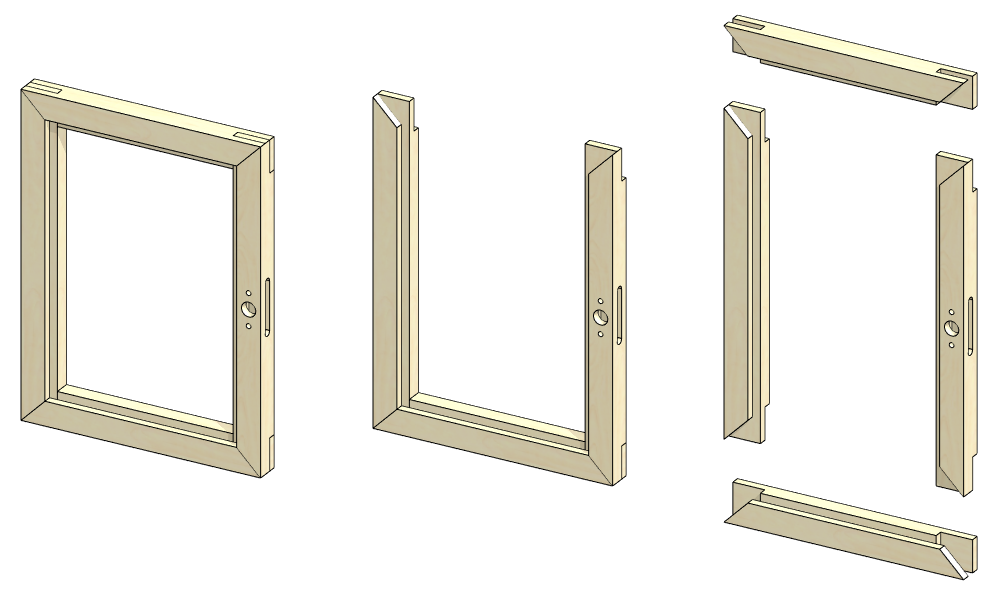 Tarkastele mallia. Huomaat että vaakakehyksissä on liitoksen muoto, mutta liitoskoneistus puuttuu pystykehyksistä.