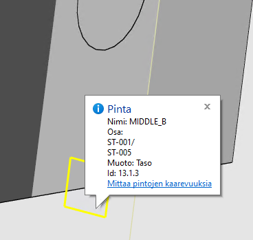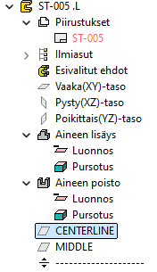 Aputasoa tehdessäsi voit antaa sille nyt nimen. Aputaso nimetään puussa tällä nimellä, jotta löydät sen helposti jatkossa. Lisäksi aputason molemmat puolet saavat nimetyn pinnan, jonka avulla esimerkiksi pinnan etsiminen ja osan vaihtaminen helpottuvat entisestään. Aputason puolet nimetään _A ja _B, jotta ne erotetaan toisistaan.