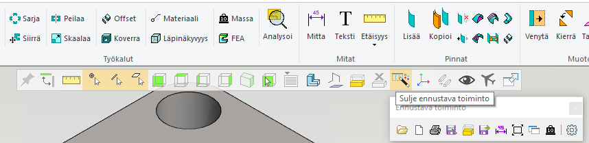 Ennustava toiminto on AI-pohjainen työkalu, joka esittää käyttäjälle kyseiseen mallinnustilanteeseen sopivimmat toiminnot. Ennustavan toiminnon saa kytkettyä päälle ja pois työkalunauhan painikkeesta. Sen oletuskäynnistymistä voi hallita käyttäjäkohtaisista asetuksista.