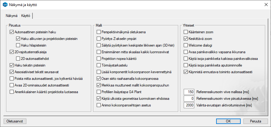 Voit vaikuttaa toiminnon oletuskäyttäytymiseen käyttäjäkohtaisten asetusten dialogista.