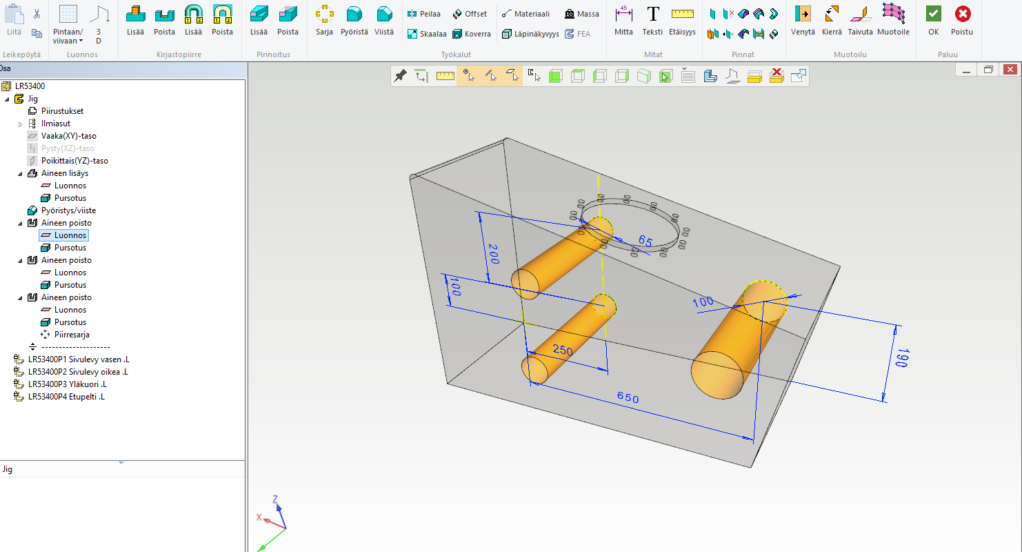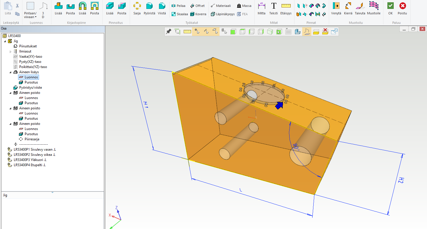 Suunnittelu aloitetaan mallintamalla jigiosa.