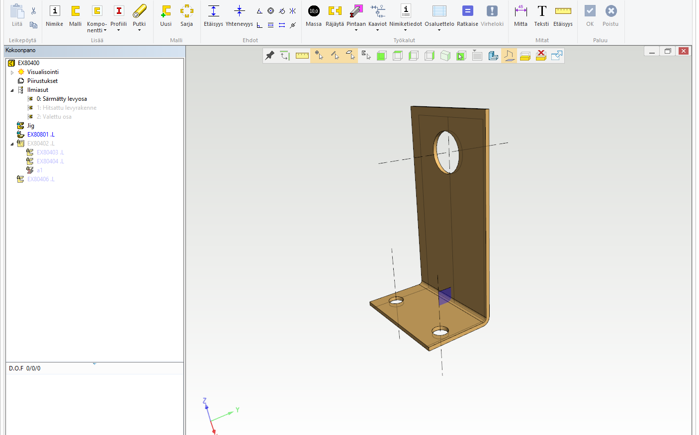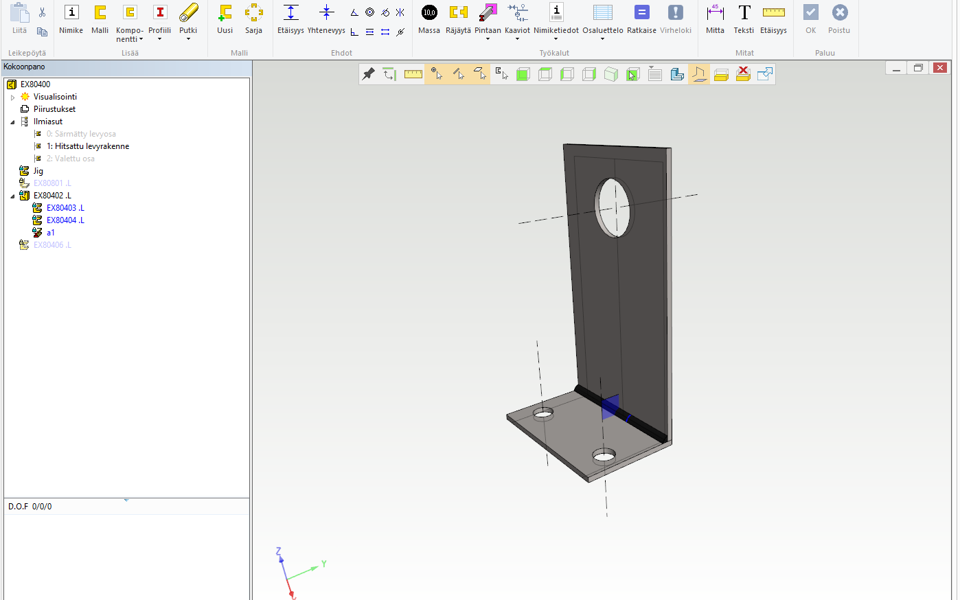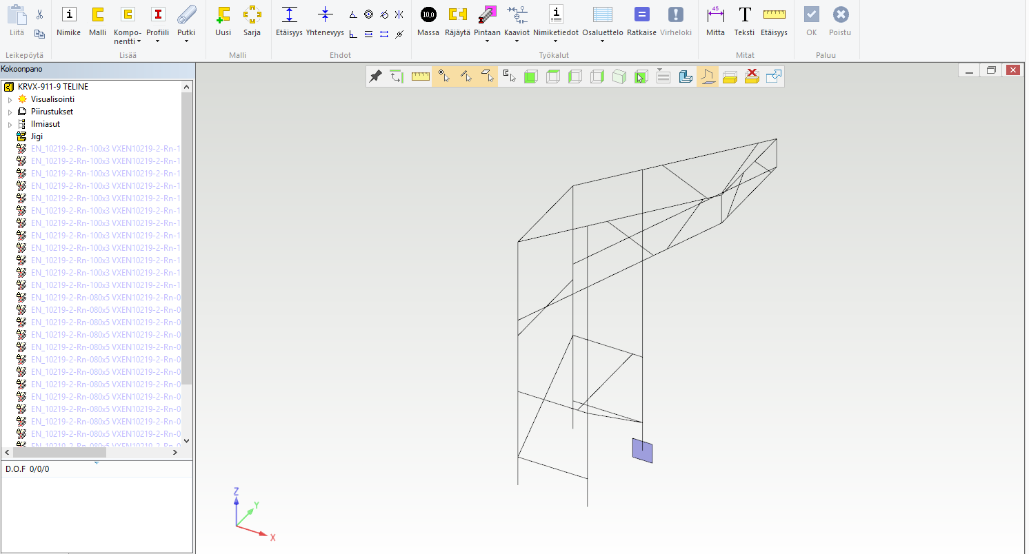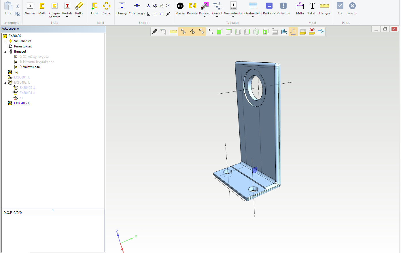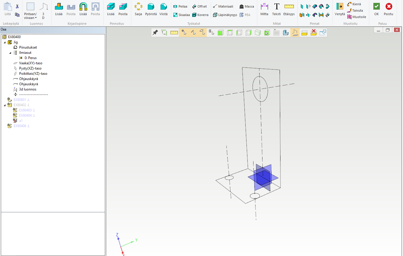 Kuva 2: Ja tästä se alkaa, tässä jigiosa muokkaustilassa, muut osat piilotettu.