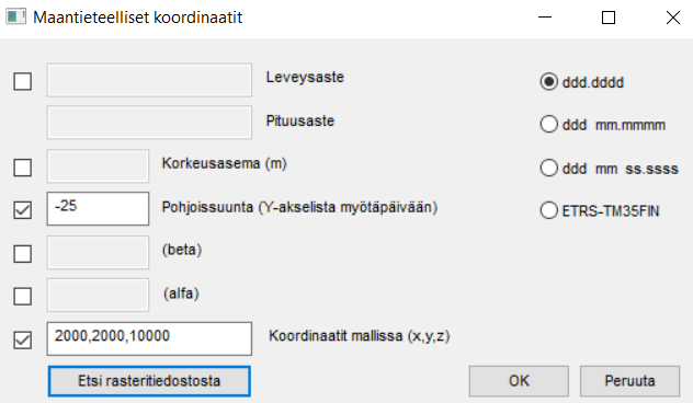 Viennin yhteydessä maantieteelliset koordinaatit kirjoitetaan suhteessa origoon tai mallin pisteeseen. Haluttaessa tehdään myös kääntö asetetun pohjoissuunnan mukaisesti.