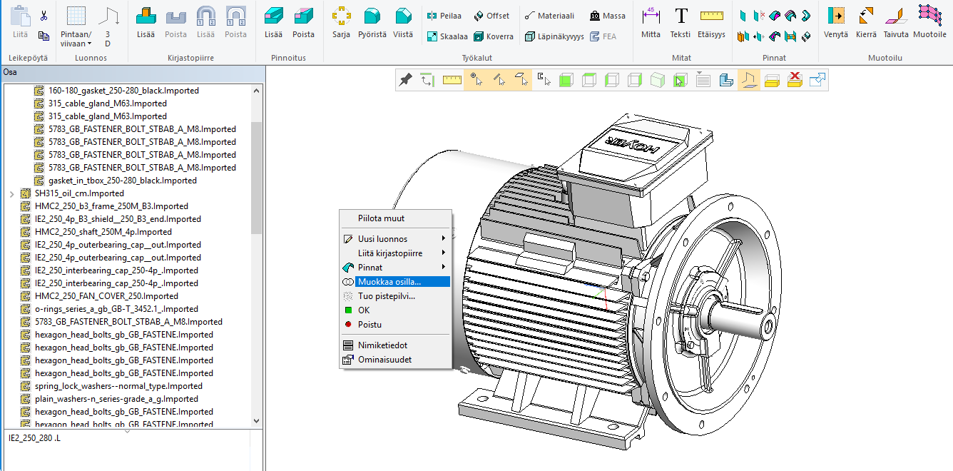 Kuva 2: Osamallinnustilassa valitse hiiren oikealla "Muokkaa osilla"