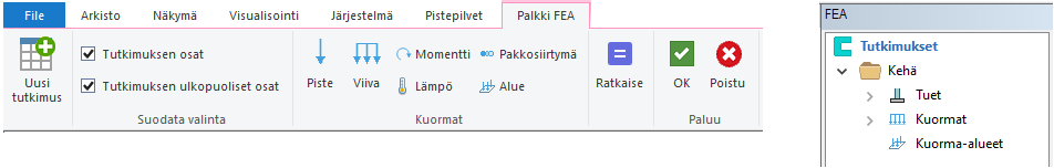 Tekninen optionumero (Näkyy lisenssitiedostossa): 161 FI "Palkki- ja sauvarakenne FEA", ENG: "FEA for Beams and Frames"