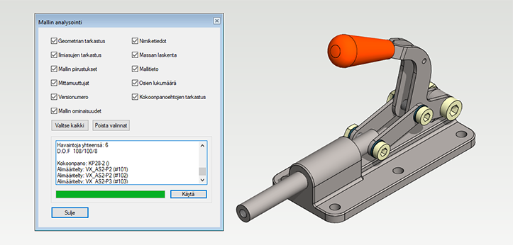 Uudella työkalulla analysoit mallien kunnon helposti ja saat yksityiskohtaisen raportin kokoonpanon kaikkein osien kunnosta.