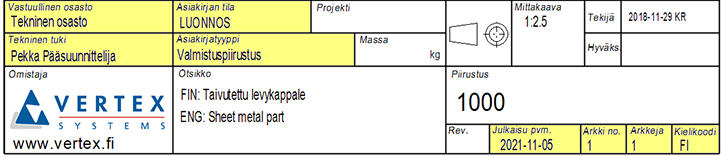 ISO 7200 standardin mukaiset piirustuslomakkeet käyttöön