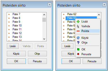 - Ensimmäiseksi voit vaikuttaa valittuihin pisteisiin. Voit lisätä, poistaa ja vaihtaa pisteen toiseen.