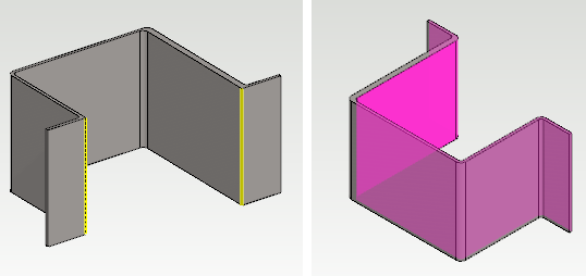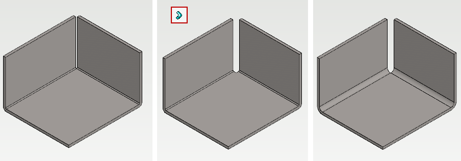 - Käytä toimintoa taivutuskulman ja taivutussäteen muuttamiseen ohutlevy malleissa, joissa ei ole historiaa.